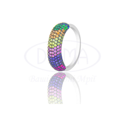 Срібна каблучка з різнокольоровим цирконом. Срібло 925 проби, покрите родієм.
