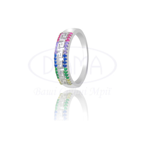 Срібна каблучка з різнокольоровим цирконом. Срібло 925 проби, покрите родієм.