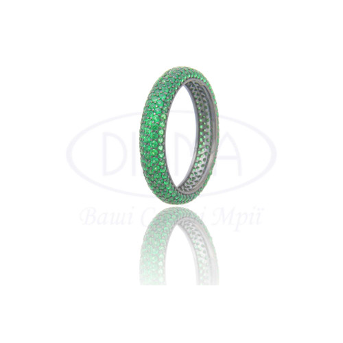 Срібна каблучка з зеленим цирконом. Срібло 925 проби, покрите чорним родієм. Ширина 4,1 мм.
