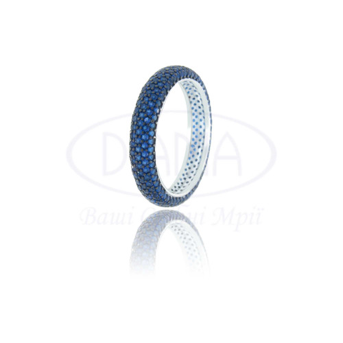 Срібна каблучка з синім цирконом. Срібло 925 проби, покрите родієм. Ширина 4,1 мм.