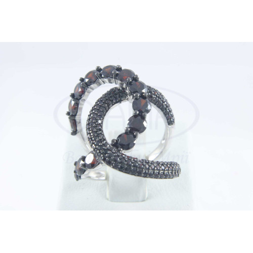 Срібна каблучка з бордовим цирконом. Срібло 925 проби, покрите родієм. Каблучка виготовлена в стилі "Шанель".