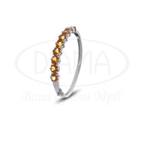 Браслет з срібла 925 проби, покритий родієм. Оздоблений камінням Султаніт, який міняє свій колір в залежності від освітлення. Може бути зеленим, помаранчевим, жовтим, малиновим.