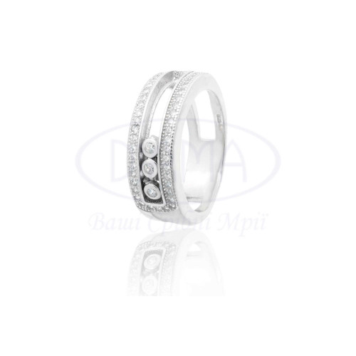 Срібна каблучка з білим цирконом, який рухається. Срібло 925 проби, покрите родієм. В наборі присутні браслет та каблучка