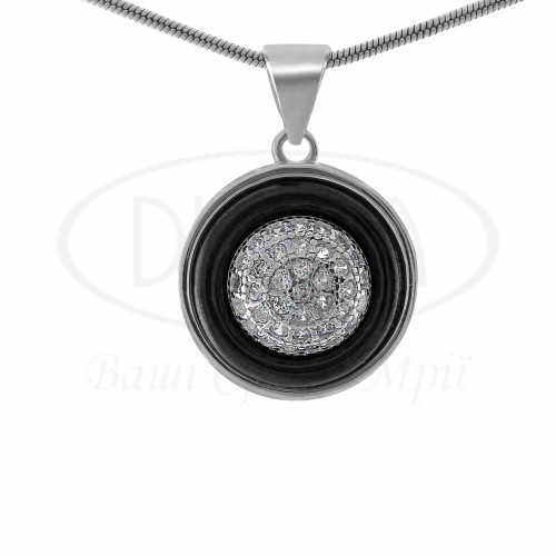 Підвіска срібна з чорною керамікою та білим цирконом у формі кола. Срібло 925 проби, покрите родієм. В наборі каблучка, сережки та підвіска.