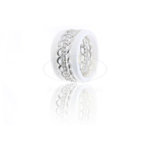 Каблучка срібна з білою керамікою та білим цирконом. Срібло 925 проби, покрите родієм.