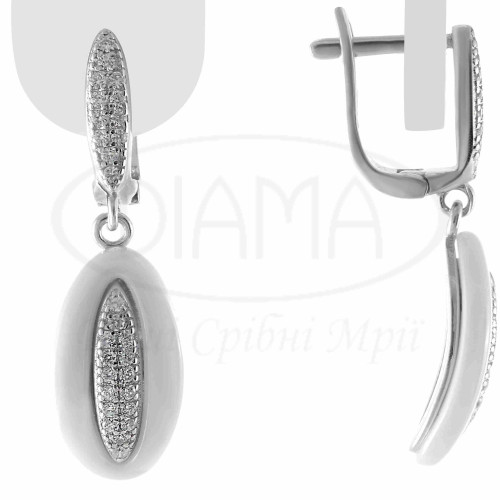 Сережки срібні з білою керамікою та білим цирконом. Срібло 925 проби, покрите родієм. В наборі присутні каблучка, сережки та підвіска.