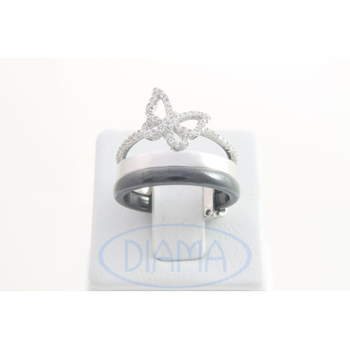 Срібна каблучка з чорною ювелірною керамікою і білим цирконом. Срібло 925 проби, покрите родієм.