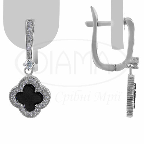 Сережки срібні з чорною керамікою та білим цирконом. Срібло 925 проби, покрите родієм.
