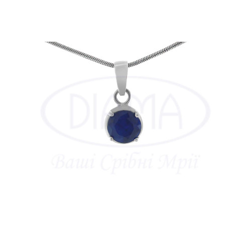 Підвіска срібна з синім сапфіром у формі кола. Срібло 925 проби, покрите родієм. В комплекті каблучка, сережки та підвіска.