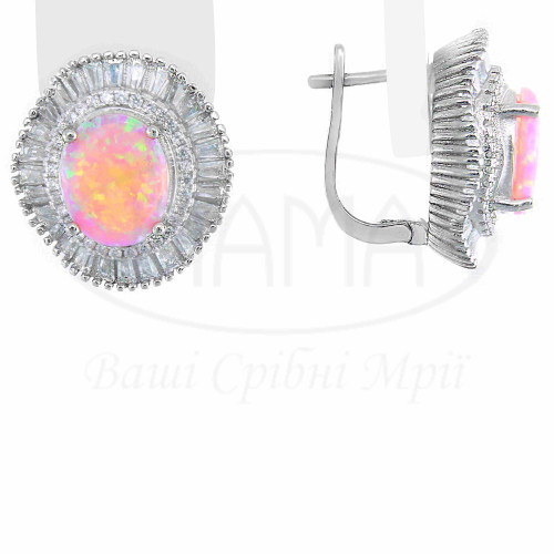 Сережки срібні з рожевим опалом та білим цирконом. Срібло 925 проби, покрите родієм. В наборі: каблучка, підвіска та сережки.