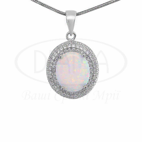 Срібна підвіска з білим Опалом та білим цирконом. Срібло 925 проби, покрите родієм. В наборі присутні каблучка, сережки та підвіска.