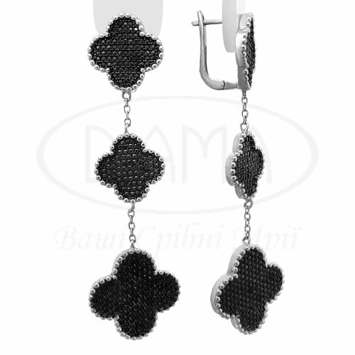 Срібні сережки з чорним цирконом. Срібло 925 проби, покрите родієм. В наборі присутні сережки та каблучка.
