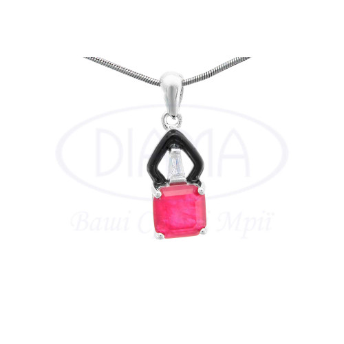 Підвіска срібна з червоним цирконом та чорною емаллю. Срібло 925 проби, покрите родієм. В наборі присутні каблучка, сережки та підвіска.