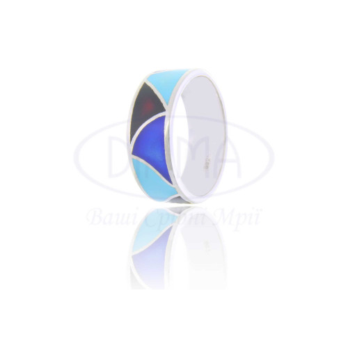 Срібна каблучка з кольоровою емаллю. Срібло 925 проби, покрите родієм. Ширина каблучки 7 мм. Комплект складається з каблучки, підвіски та сережок.