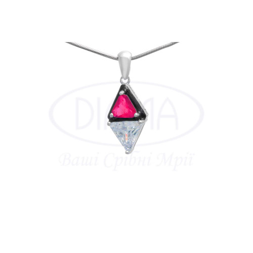 Підвіска срібна з червоним та білим цирконом та чорною емаллю. Срібло 925 проби, покрите родієм. В наборі присутні каблучка, сережки та підвіска.