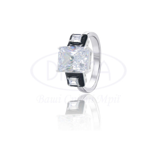 Срібна каблучка з білим цирконом та чорною емаллю. Срібло 925 проби, покрите родієм. В наборі присутні каблучка, сережки та підвіска.