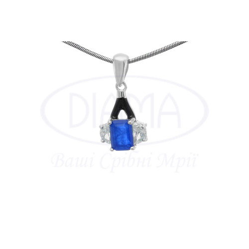 Підвіска срібна з синім та білим цирконом, а також чорною емаллю. Срібло 925 проби, покрите родієм. В наборі присутні каблучка, сережки та підвіска.