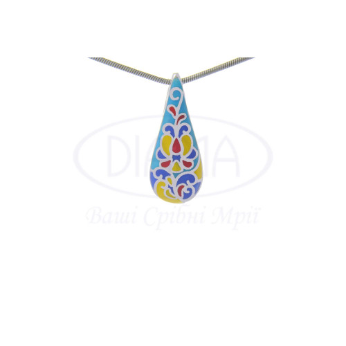 Срібна підвіска з кольоровою емаллю у формі краплі. Срібло 925 проби, покрите родієм. В наборі каблучка, підвіска та сережки.