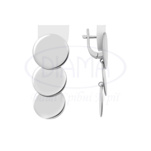 Сережки срібні з круглими срібними пластинками. Срібло 925 проби, покрите родієм. В комплекті каблучка та сережки. Розміри пластинок - 16, 15, 14 мм