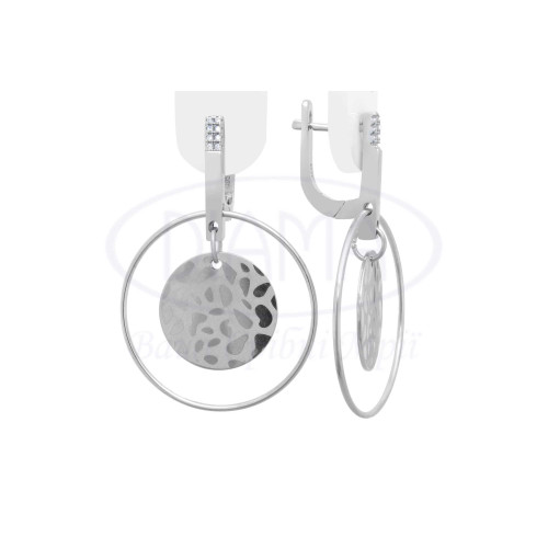 Сережки срібні з кругами та білим цирконом. Срібло 925 проби, покрите родієм. Розмір кругів 31 та 18 мм.