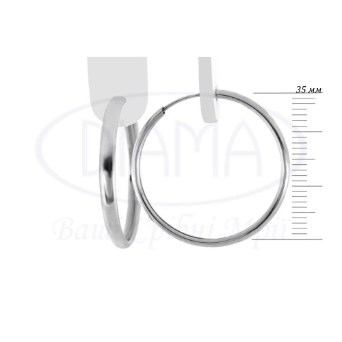 Срібні сережки кільця у формі круга. Срібло 925 проби, покрите родієм. Діаметр сережки 35 мм. товщина сережки 3,5 мм.