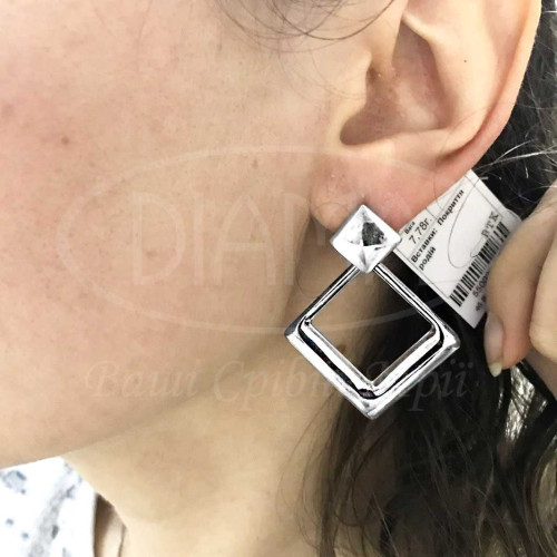 Срібні сережки в формі Ромба. Срібло 925 проби, покрите родієм. Розмір ромба 35 мм.