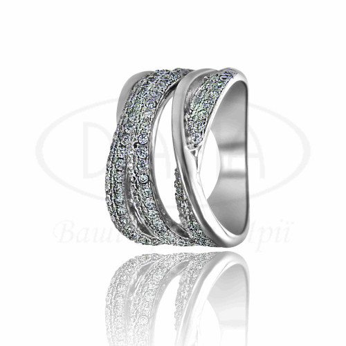 Срібна каблучка з білим цирконом. Срібло 925 проби, покрите родієм. В комплекті сережки та каблучка.
