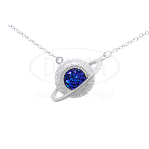 Кольє срібне з синім кварцем та білим цирконом. Срібло 925 проби, покрите родієм. У комплекті кольє, підвіска та браслет.