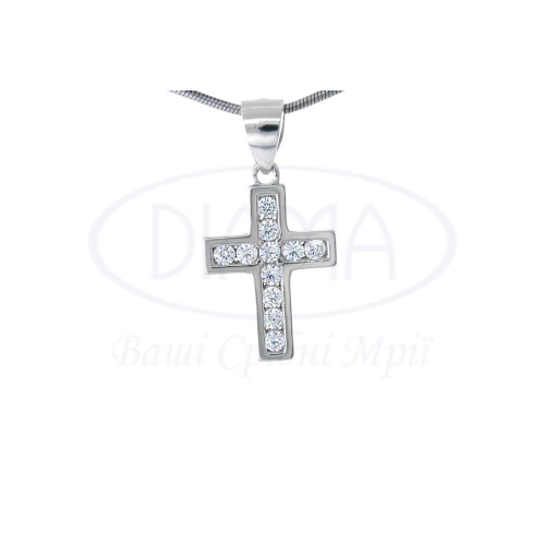Хрестик зі срібла 925 проби, покритий родієм. Вставка білий Циркон. Розмір хрестика 17×13 мм, ширина 3,8 мм
