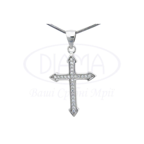 Хрестик срібний з білим Цирконом. Срібло 925 проби, покрите родієм. Розмір хрестика 25×18 мм