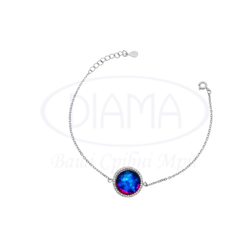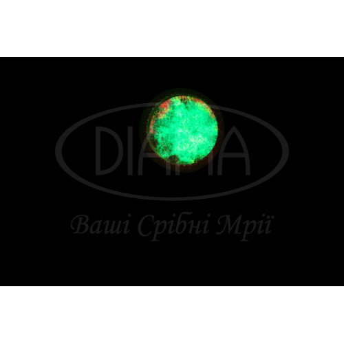 Кольє срібне з ювелірним склом, що світиться у темряві, а також з білим цирконом. Срібло 925 проби, покрите родієм. Розмір головного елементу 17 мм.