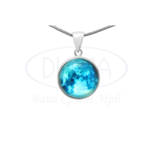 Підвіска срібна з ювелірним склом, що світиться в темряві. Срібло 925 проби, покрите родієм. Розмір головного елементу 15,5 мм.