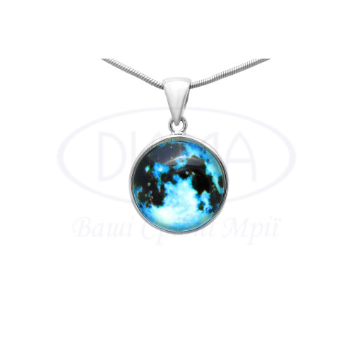 Підвіска срібна з ювелірним склом, що світиться в темряві. Срібло 925 проби, покрите родієм. Розмір головного елементу 15,5 мм.