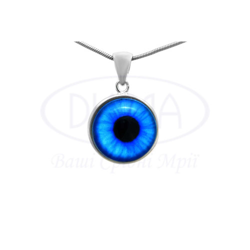 Підвіска срібна з ювелірним склом у вигляді Ока, що світиться в темряві. Срібло 925 проби, покрите родієм. Розмір головного елементу 15,5 мм.