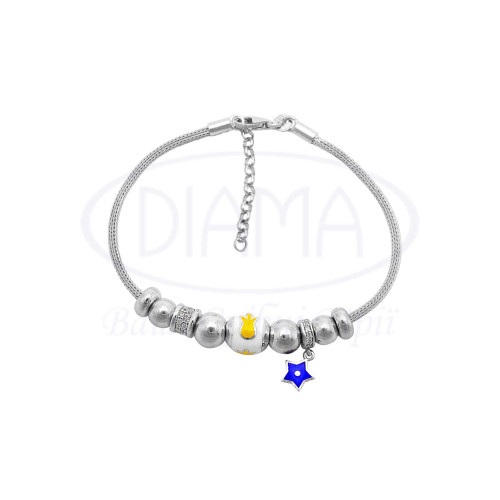 Срібний браслет в стилі Pandora з шармоми у формі кола з білою та жовтою емаллю та білим цирконом. Срібло 925 проби, покрите родієм. В браслеті можуть відрізнятися деякі другорядні елементи та їх колір.