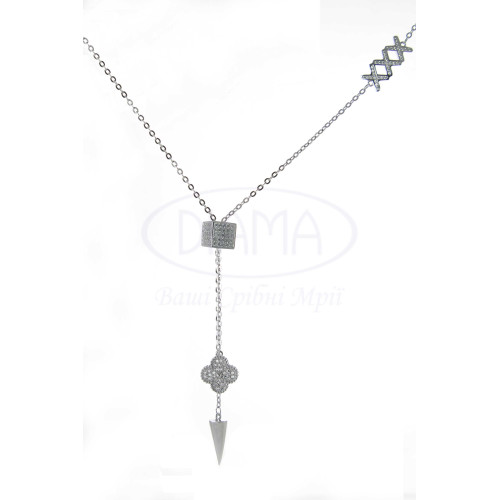 Срібне кольє з білим цирконом.. Срібло 925 проби, покрите родієм.