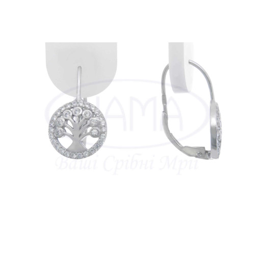 Сережки срібні з білим цирконом у формі кола, в середині якого находиться дерево. Срібло 925 проби, покрите родієм. В комплекті також є каблучка та підвіска.