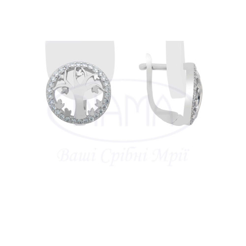 Сережки срібні з білим цирконом у вигляді дерева. Срібло 925 проби, покрите родієм. В наборі є каблучка, сережки та підвіска