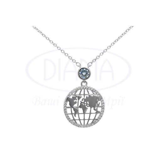 Срібне кольє з білим цирконом в формі Планети. Срібло 925 проби, покрите родієм. Розмір 20.5 мм.