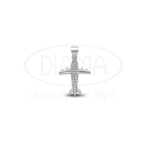 Срібна підвіска з білим цирконом в формі Літака. Срібло 925 проби, покрите родієм. Розмір підвіски 20х17 мм.