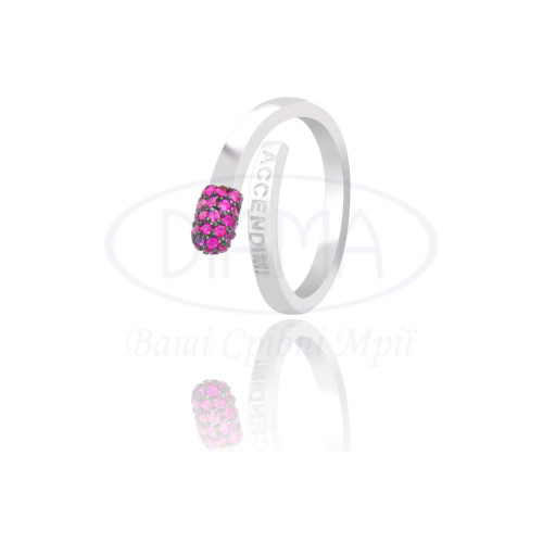 Срібна каблучка в формі Сірника з малиновим цирконом. Срібло 925 проби, покрите родієм. В наборі є каблучка, сережки та кольє.