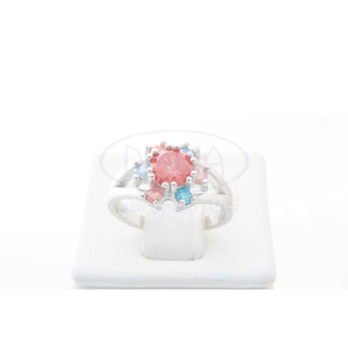 Каблучка срібна з різнокольоровим цирконом. Срібло 925 проби, покрите родієм. В комплекті також є сережки.