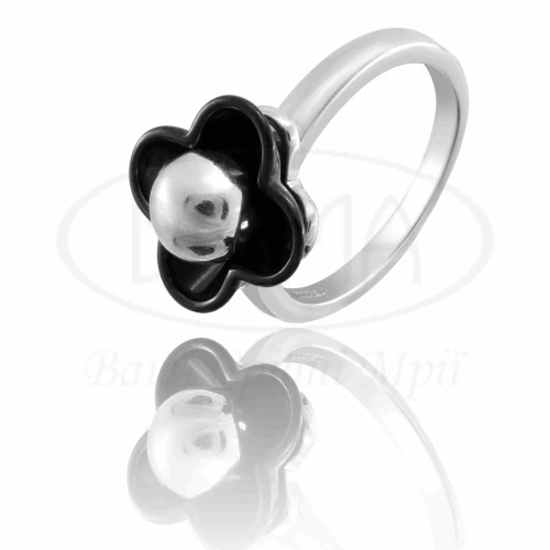 Каблучка срібна з чорною керамікою у формі "Клевер". Срібло 925 проби, покрите родієм. В наборі присутні каблучка, сережки та підвіска.