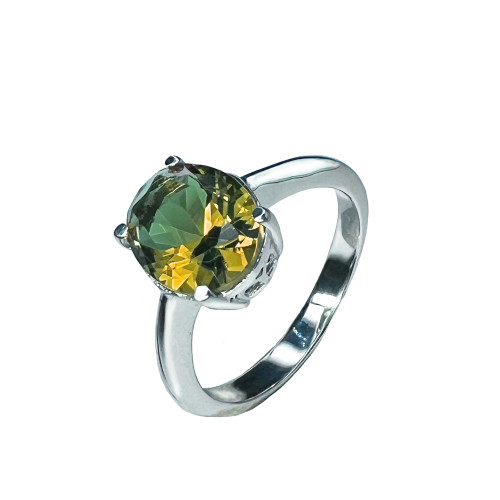Каблучка срібна в формі овала. Срібло 925 проби, покрите родієм. Вставка Султаніт (камінь, який змінює свій колір в залежності від освітлення). Може бути зеленим, жовтим, малиновим або яскраво помаранчевим. В наборі присутні каблучка, сережки та підвіска. Розмір вставки 8×10 мм