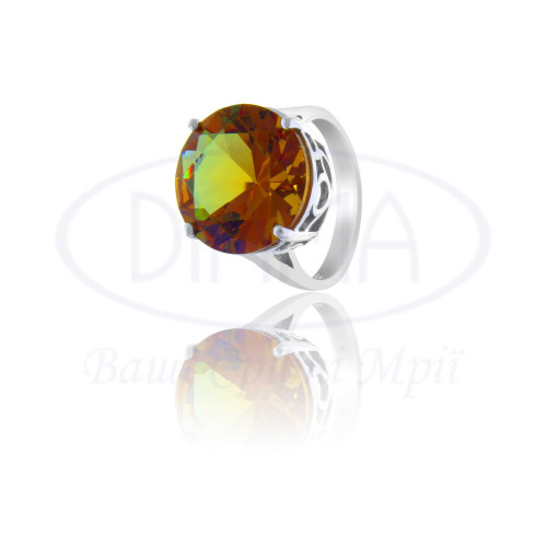 Каблучка зі срібла 925 проби, покрита родієм. Вставка Султаніт, камінь, який змінює свій колір в залежності від освітлення. Може бути зеленим, жовтим, малиновим або яскраво помаранчевим. В наборі також присутні сережки та підвіска.