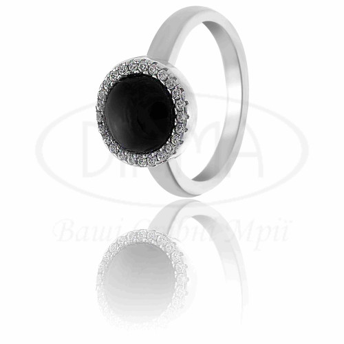 Каблучка срібна з чорною керамікою, навколо якої розташовані камінці білого циркону. Срібло 925 проби, покрите родієм. В наборі каблучка, сережки та підвіска.