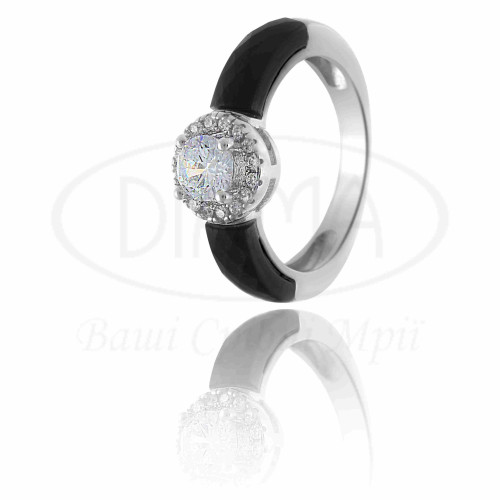Каблучка срібна з чорною керамікою та білим цирконом. Срібло 925 проби, покрите родієм. В наборі каблучка, сережки та підвіска.