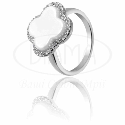 Каблучка срібна з білою керамікою та білим цирконом у формі "Клевер". Срібло 925 проби, покрите родієм. В комплекті також є сережки та підвіска.