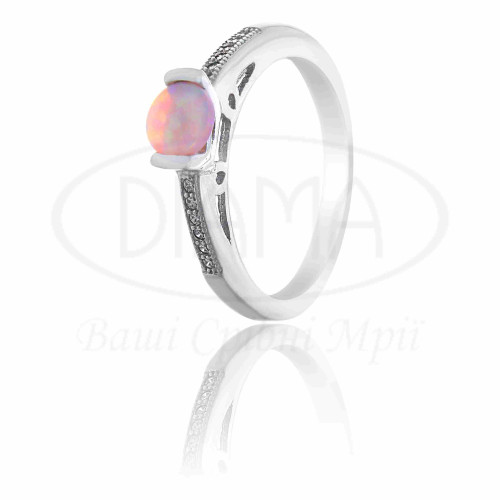 Каблучка срібна з рожевим опалом та білим цирконом. Срібло 925 проби, покрите родієм.