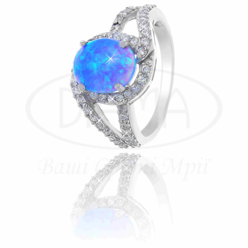 Каблучка срібна з синім опалом та білим цирконом. Срібло 925 проби, покрите родієм. До набору входить каблучка та сережки.